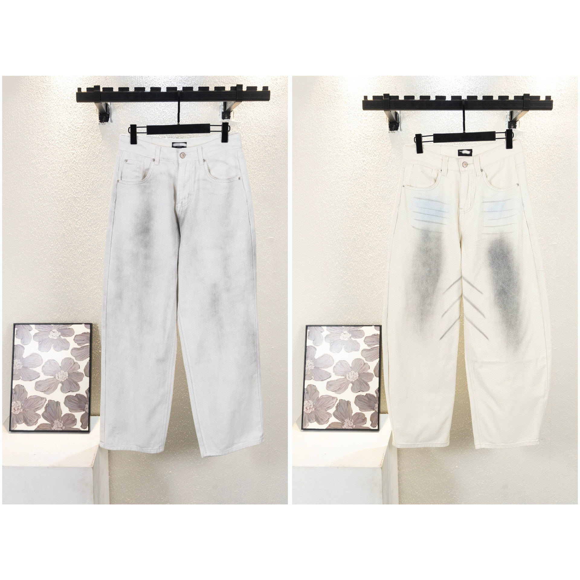 Balenciaga's new vintage-style tie-dye wide-leg denim casual trousers-5433