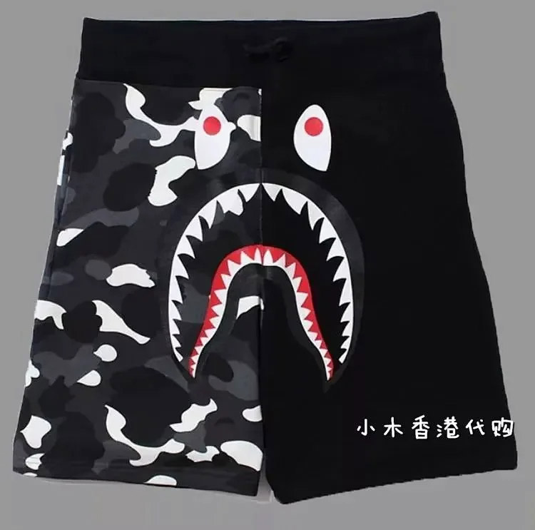 BAPE colorblock camouflage glow-in-the-dark shark series casual shorts-4245