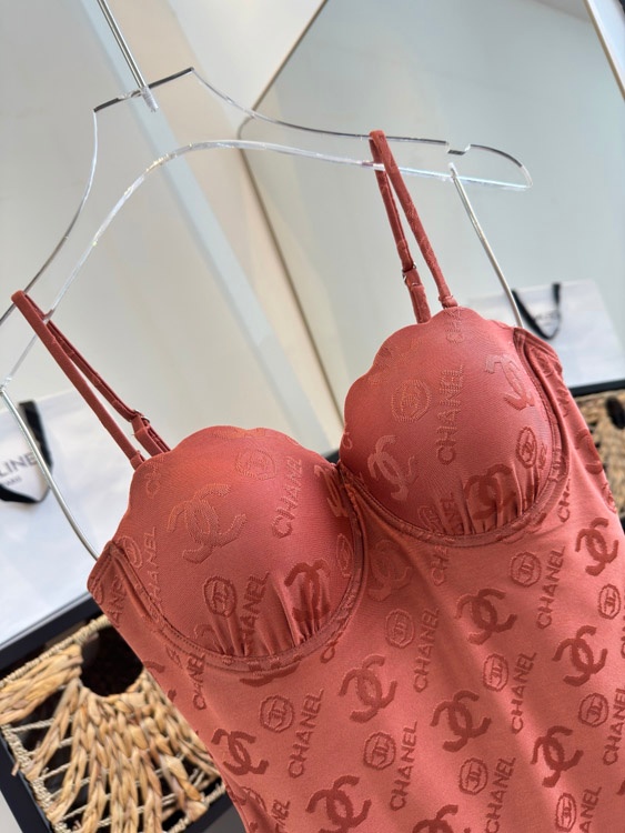 Chanel Jacquard Sexy Strappy One-Piece Swimsuit with Padded Triangle Cups-6444