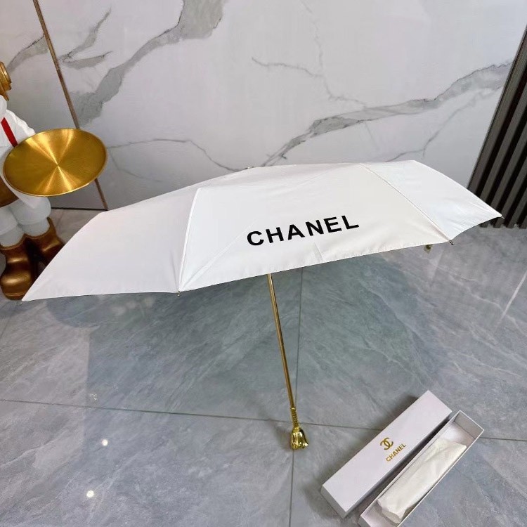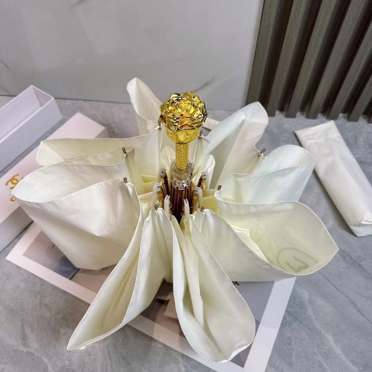 Chanel New Three-Fold Sun Umbrella with Rose-Shaped Handle-6531
