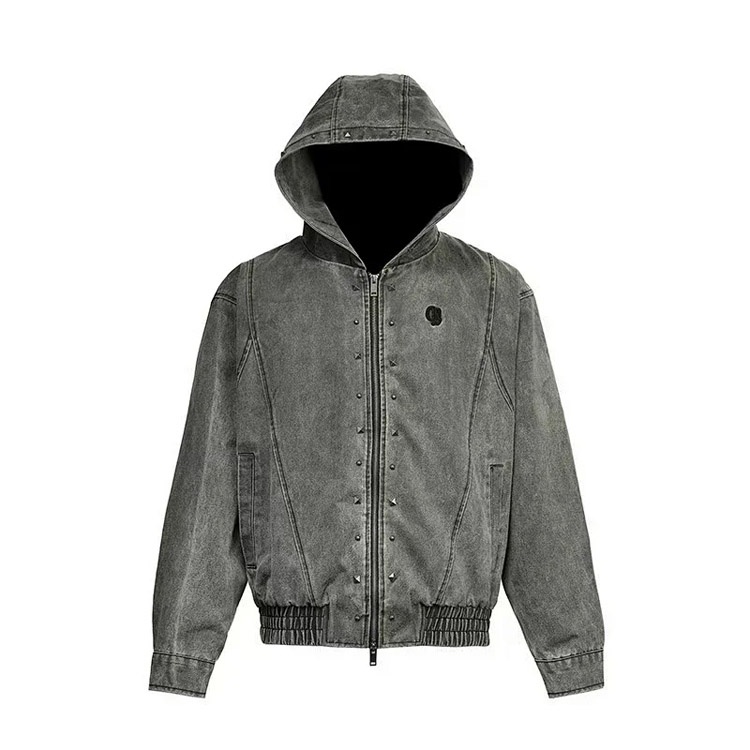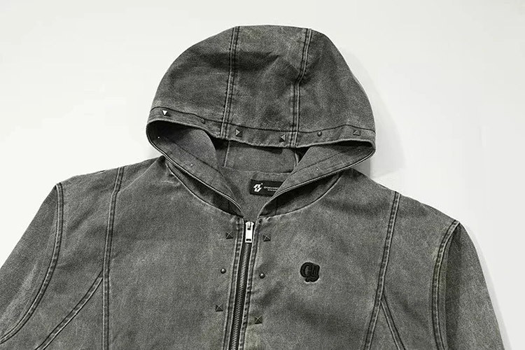 Darkage new washed and distressed hooded jacket with rivets-5013