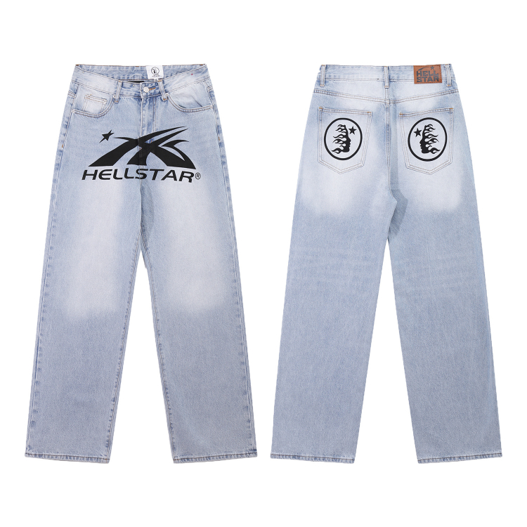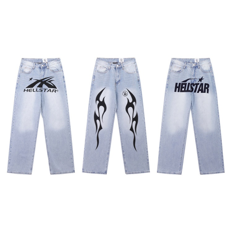 Home > Hellstar Casual Loose Straight-Leg Printed Washed Denim Jeans-5281