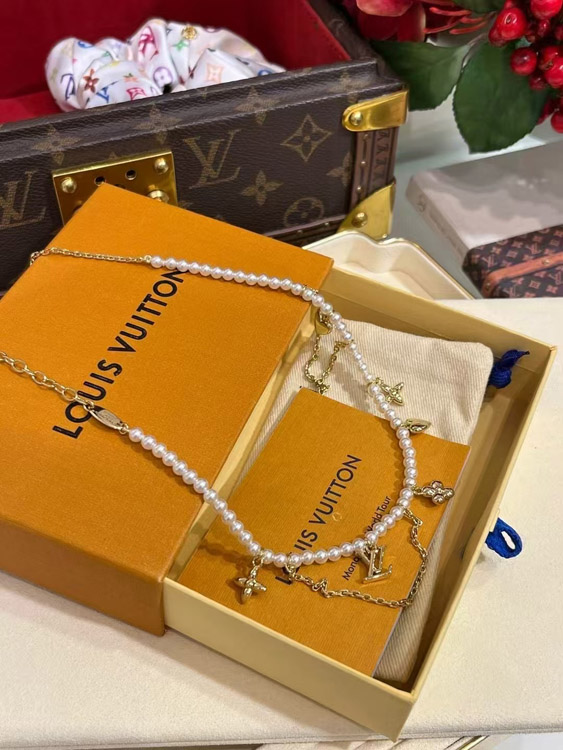 Home > Louis Vuitton LV Gold Letters Old Flower Pearl Necklace-3721