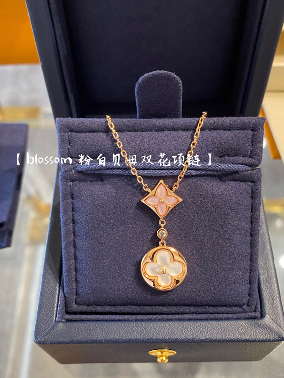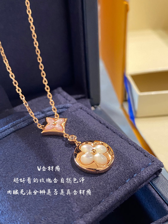 Louis Vuitton LV rose gold two-tone shell double flower necklace-3582