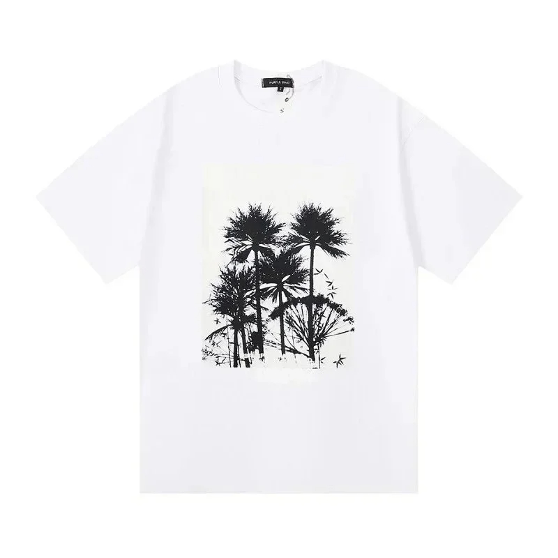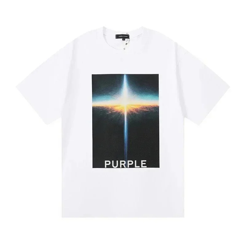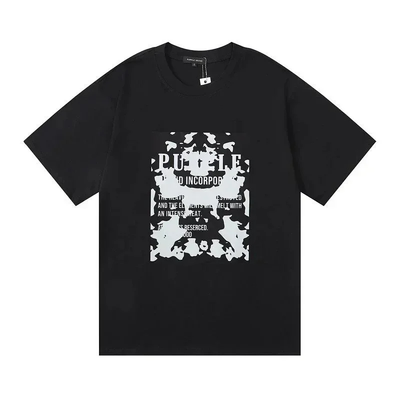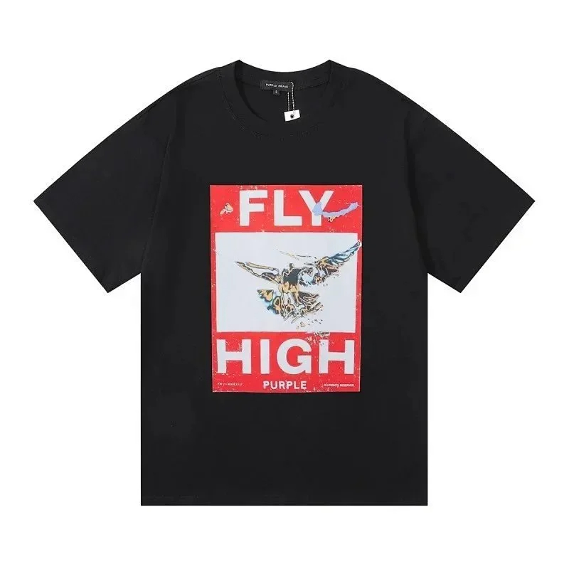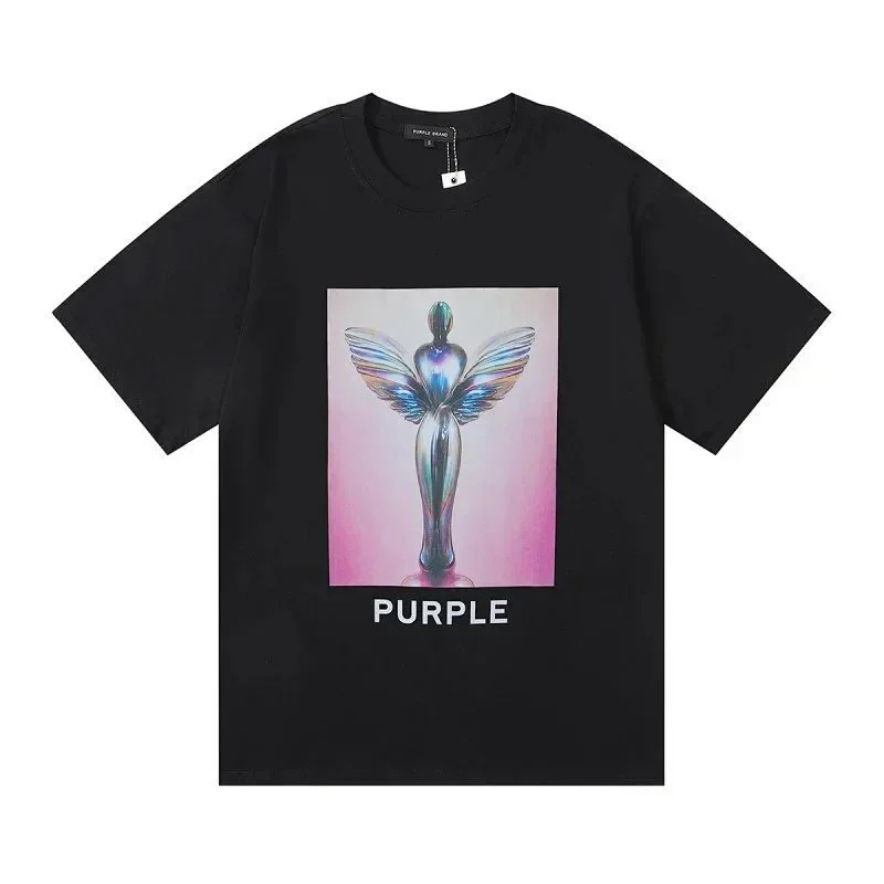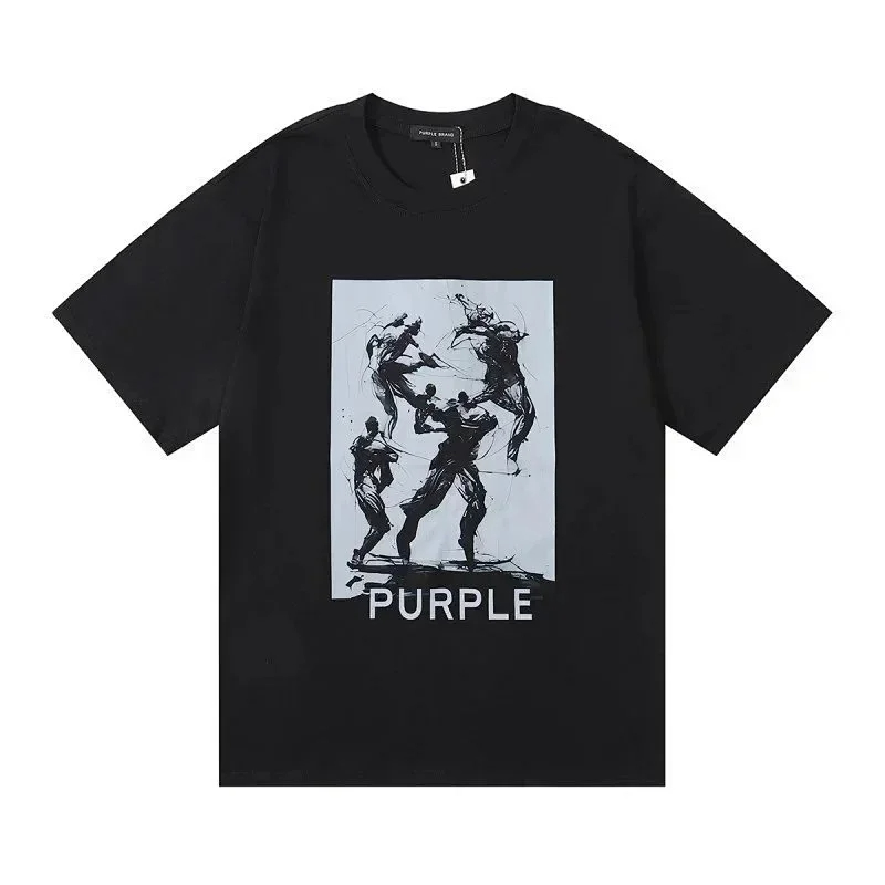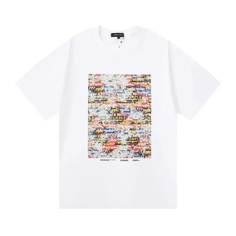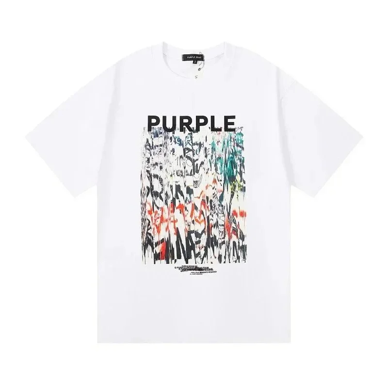 PURPLE Letter pattern printed short-sleeved T-shirt for men and women American high street half-sleeve-1886