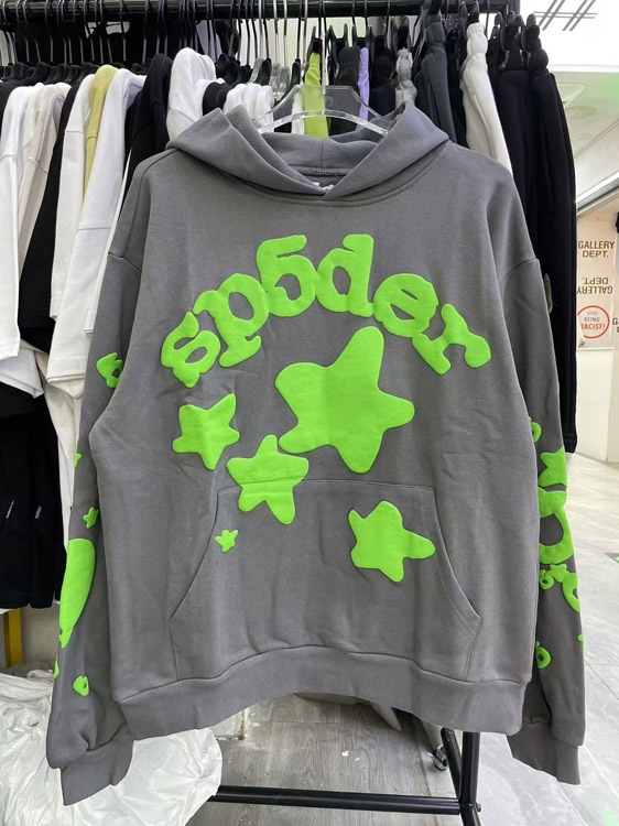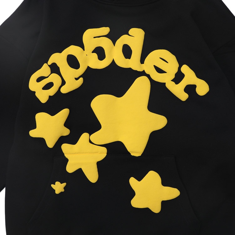 Sp5der 5555 Five-pointed star letter foam print hoodie-4591