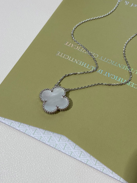 Van Cleef & Arpels four-leaf clover white wide necklace-3788