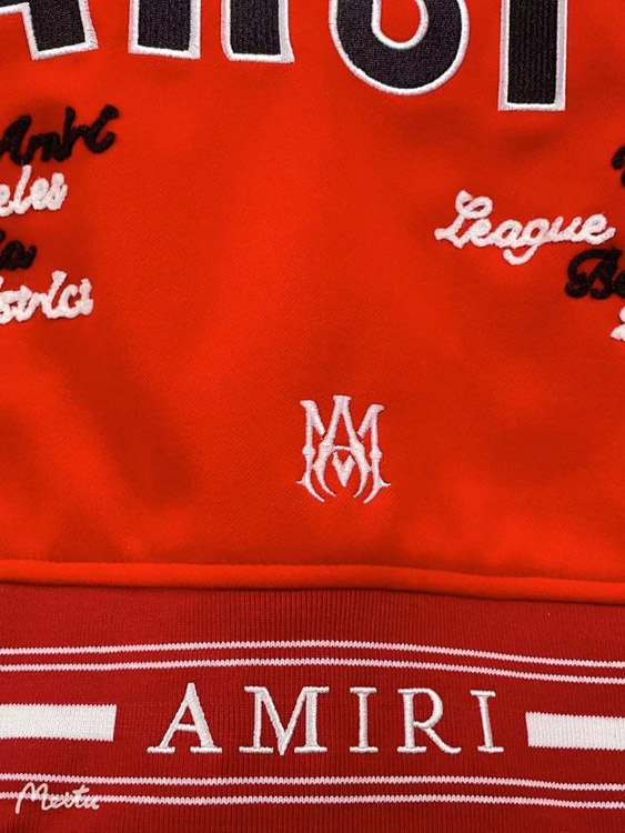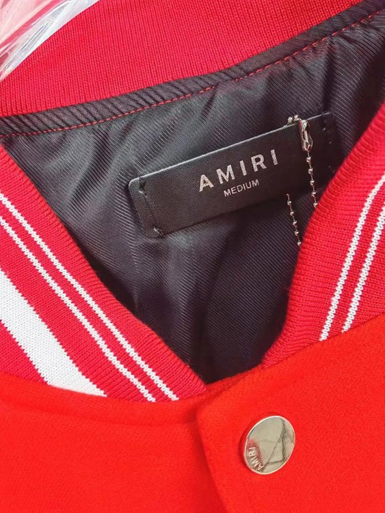 Amiri Embroidered Letter Baseball Jacket with Padded Leather Sleeves-4759