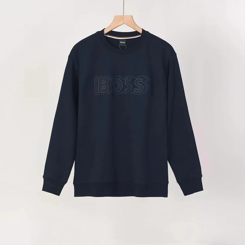 BOSS stretch cotton round neck embossed letter sweatshirt-4469