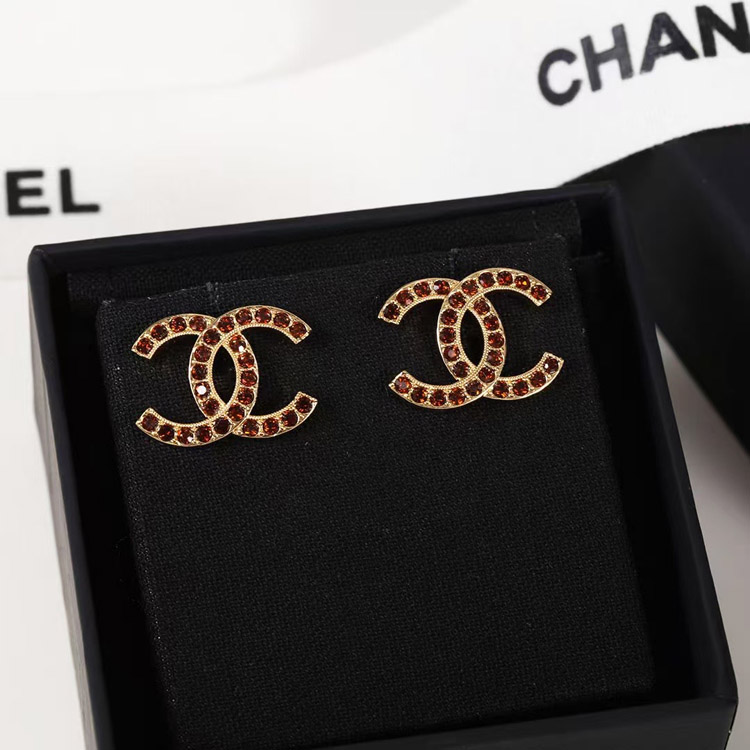 Chanel amber double c rhinestone vintage gold earrings-3742