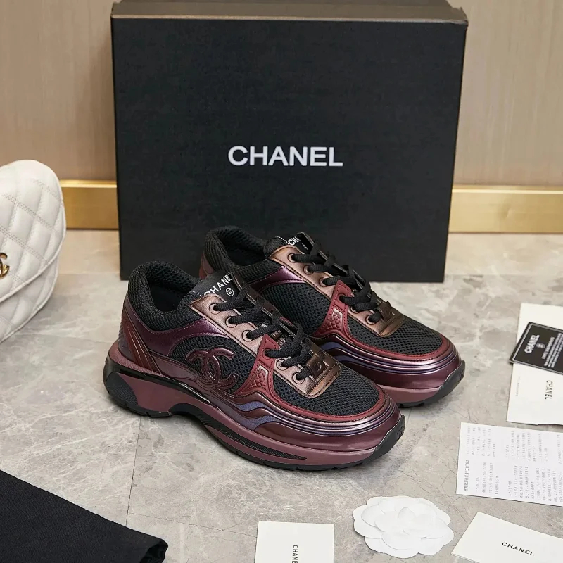 CHANEL Leather Fashion Lace-Up Low-Top Lifestyle Shoes-2905