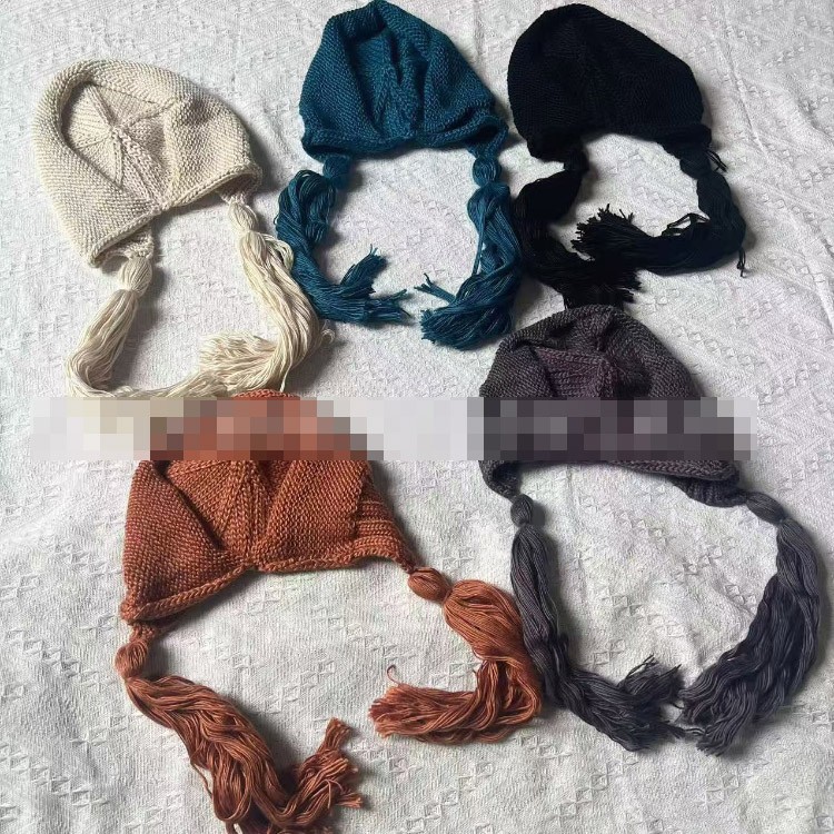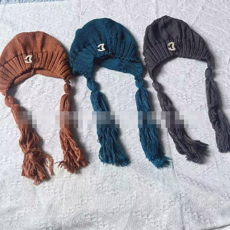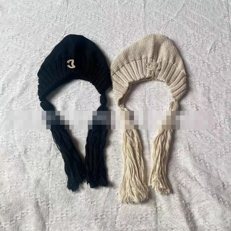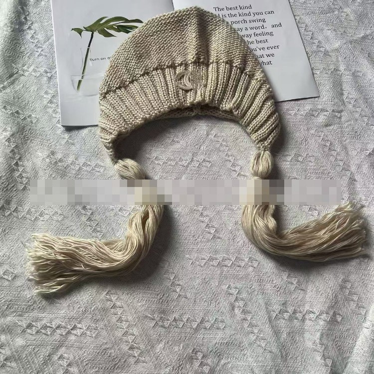 Chanel solid color vintage knitted hat with tassels-5856
