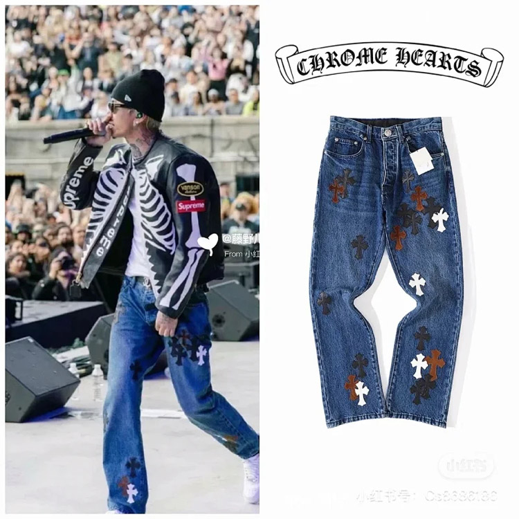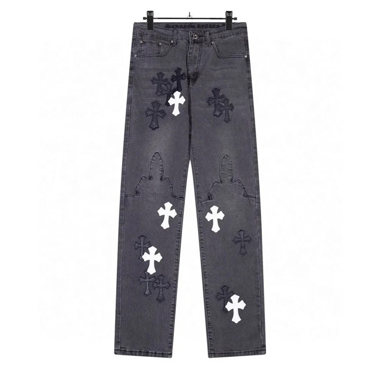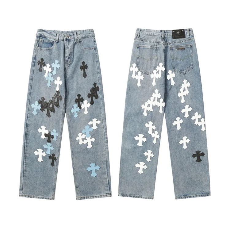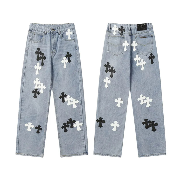 Chrome Hearts CH Appliqué Embroidered Washed Loose-fitting Jeans-4939