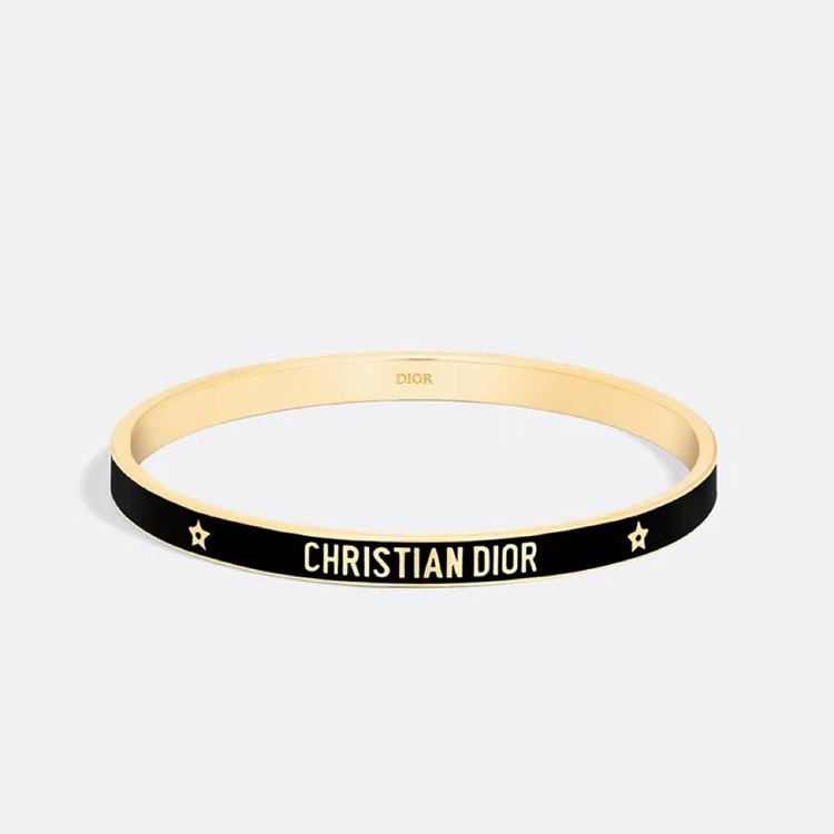 Dior bracelet gold finish metal black lacquer thin bracelet-3709