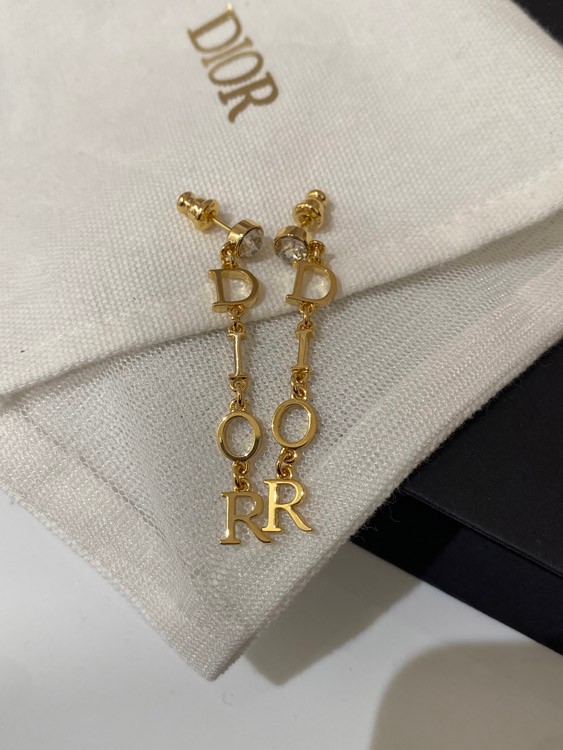 Dior diamond long letter earrings-3956