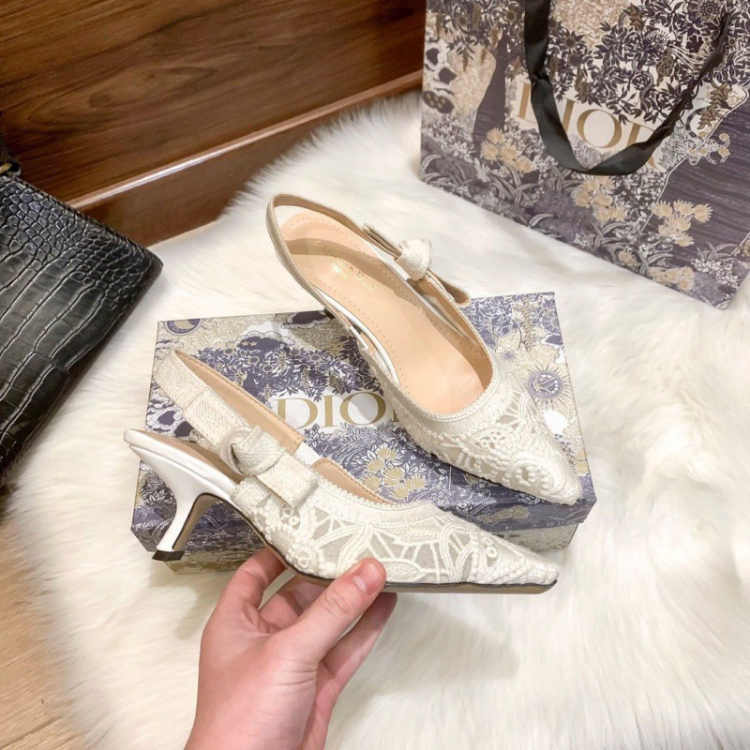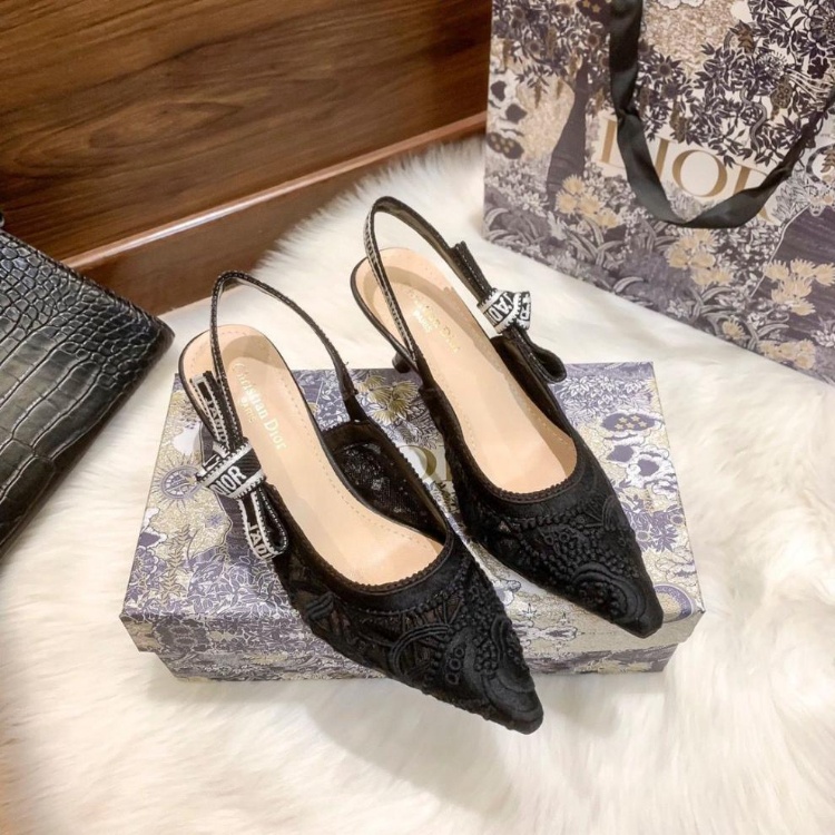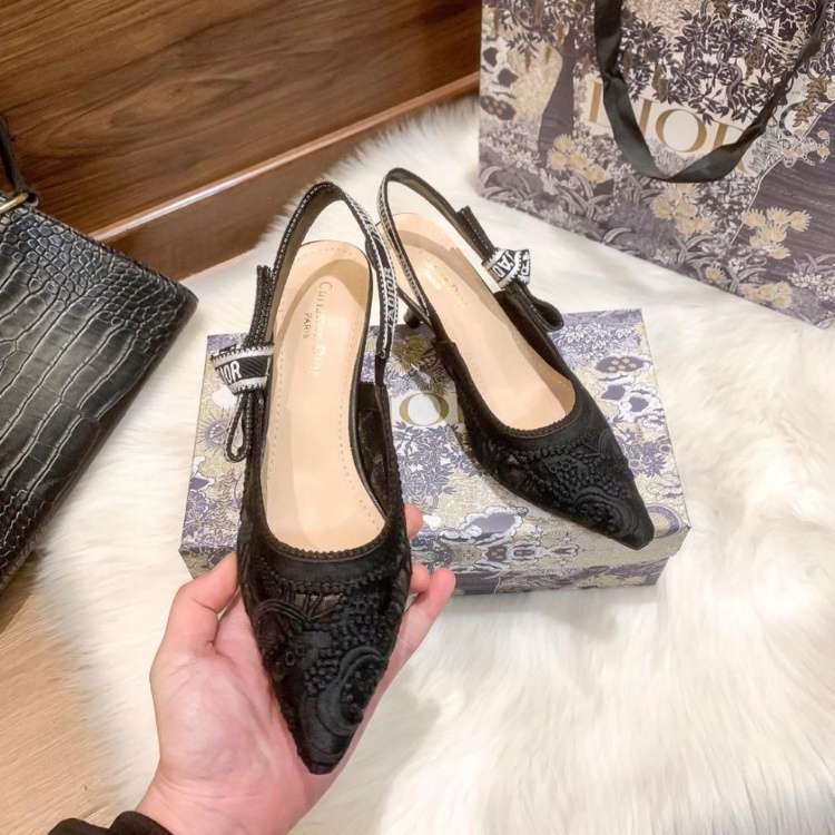 Dior's new lace pointed-toe slingback heels with a thin heel-5614