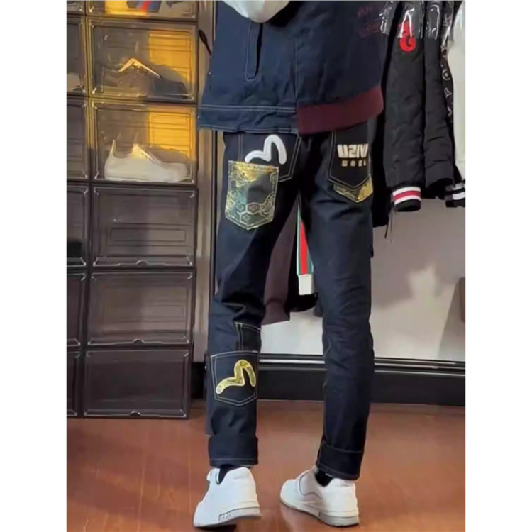 EVISU new embroidered and printed washed denim jeans-5866