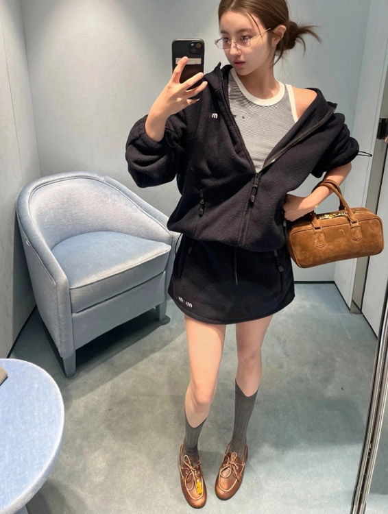 Miu Miu new collection set Embroidered logo fleece hooded zip-up jacket-5363