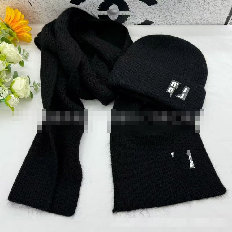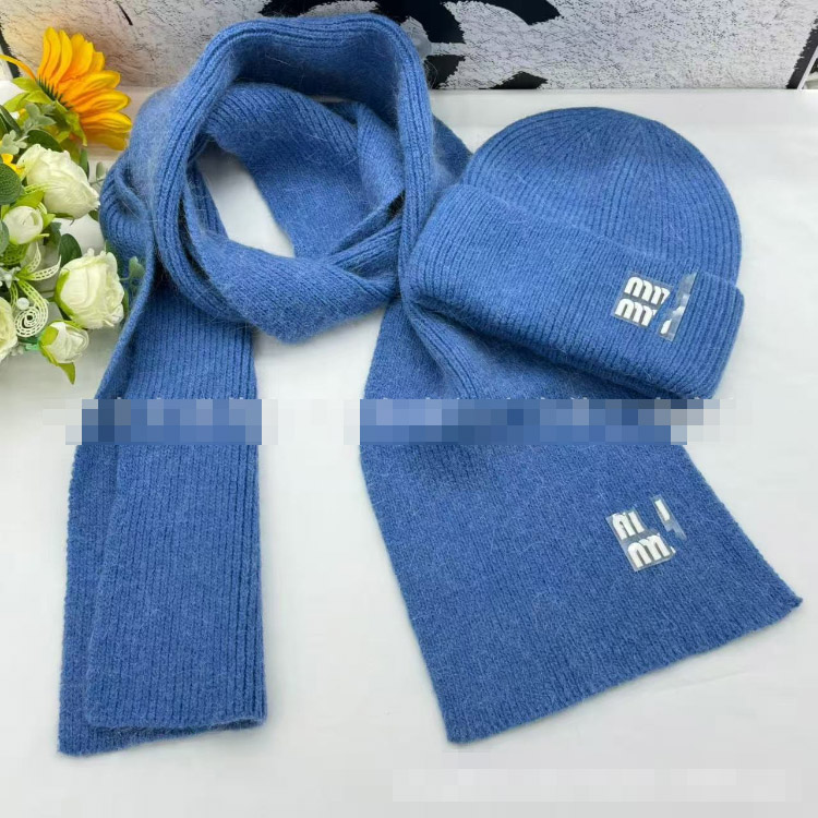 Miu Miu new rabbit fur warm knitted hat and scarf set-5977