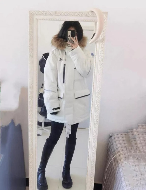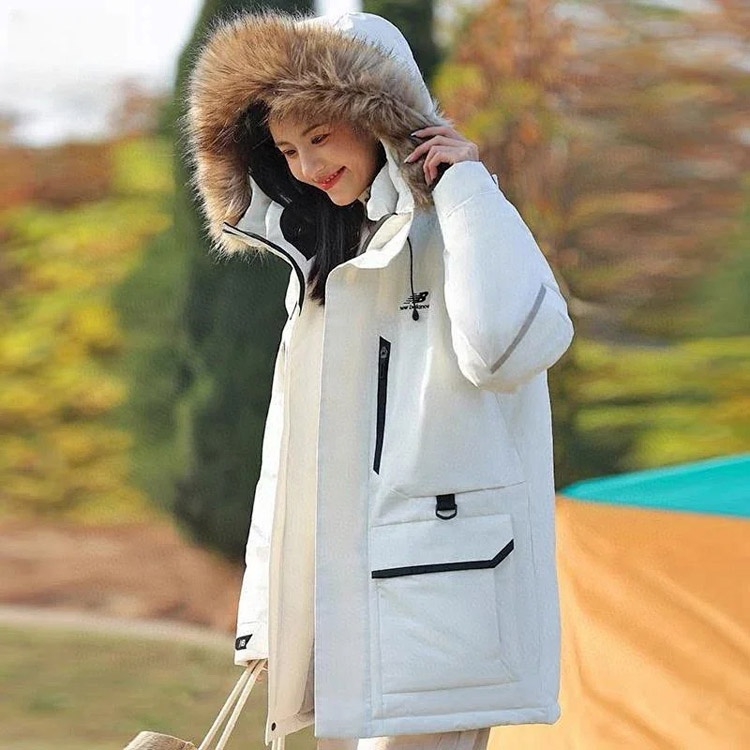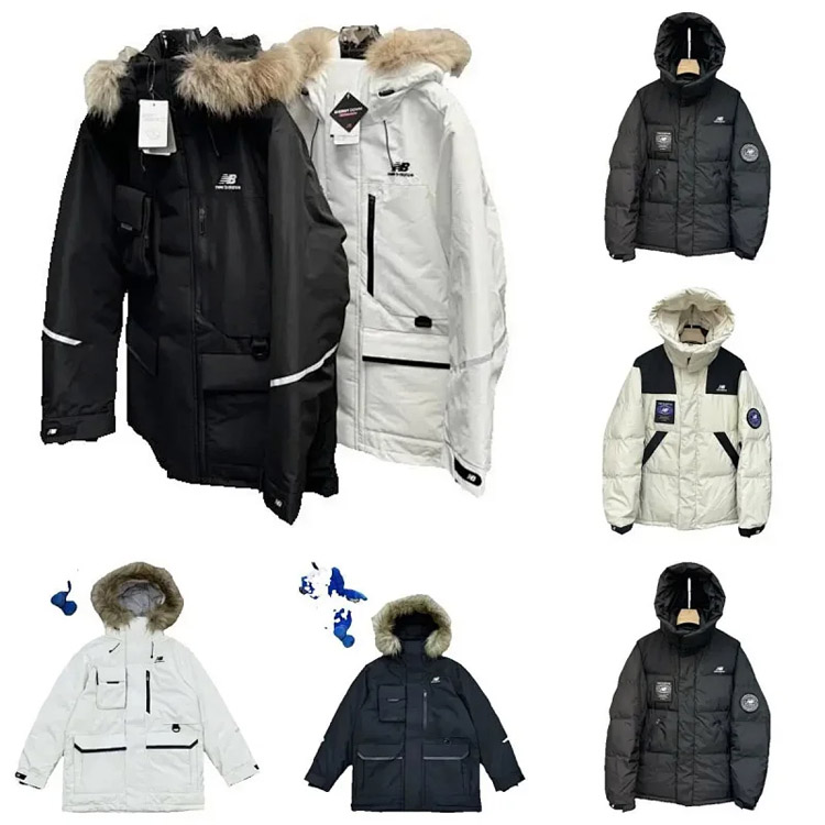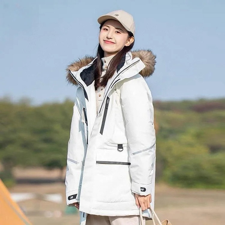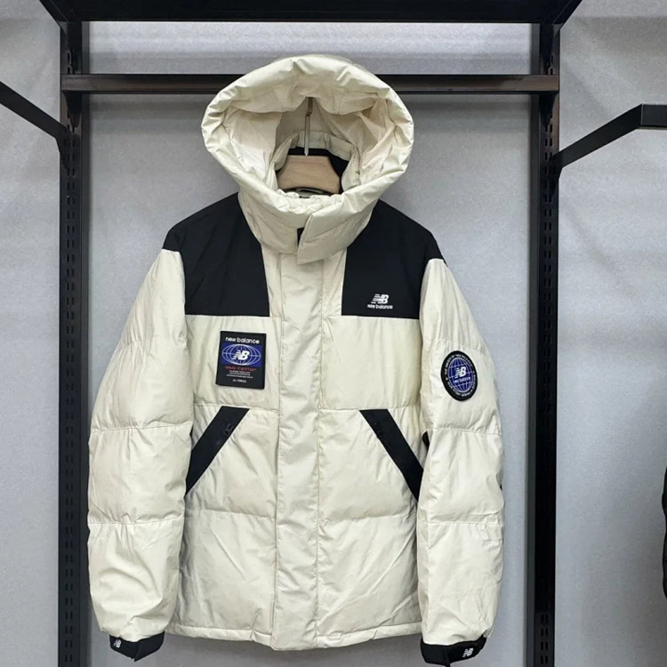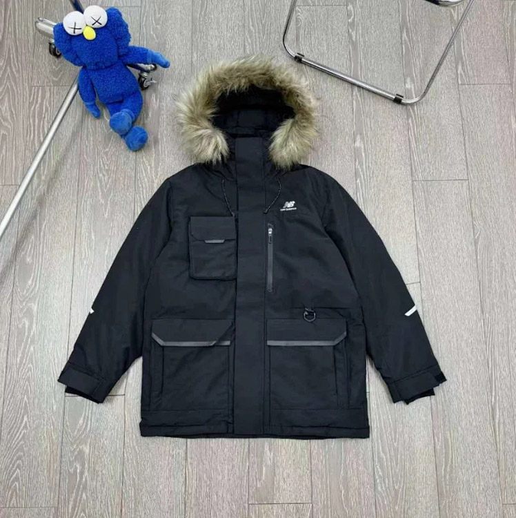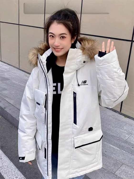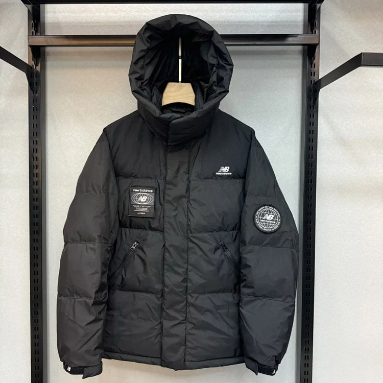 New Balance Embroidered Sports Zipper Hooded Mid-Length Workwear Down Jacket-4264