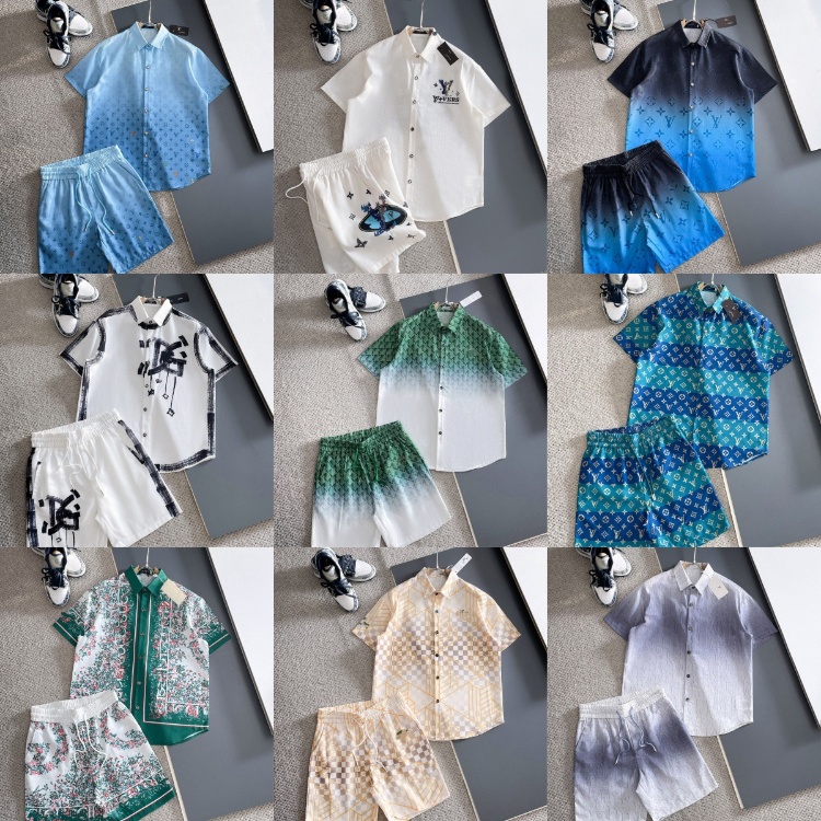New Lacoste & Louis Vuitton (LV) Cotton-Linen Short-Sleeve Shirt and Shorts Set-6346