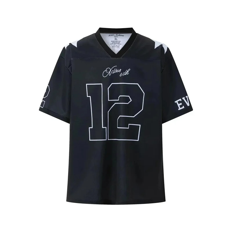 Spliced letter print short-sleeved T-shirt digital mesh sports jersey-1908